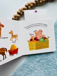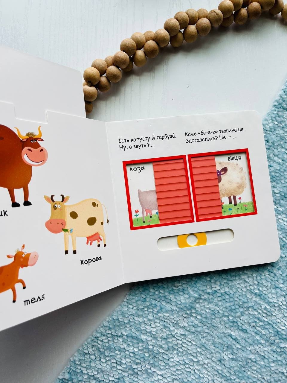 Видання ознайомить малят з різними свійськими тваринами. У розвивальній книжці-грі «Ферма», яка містить рухомі елементи для занять із дітлахами 2+, на кожній сторінці є подвійний висувний елемент з барвистими ілюстраціями, які доповнюють коротенькі віршики Сергія Цушка та Василя Федієнка про мешканців ферми.