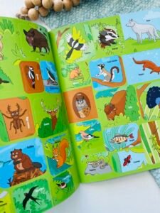 Завдяки стікербуку маленькі читачі запам’ятають назви тварин і рослин, розвинуть увагу, потренують дрібну моторику та логічне мислення.