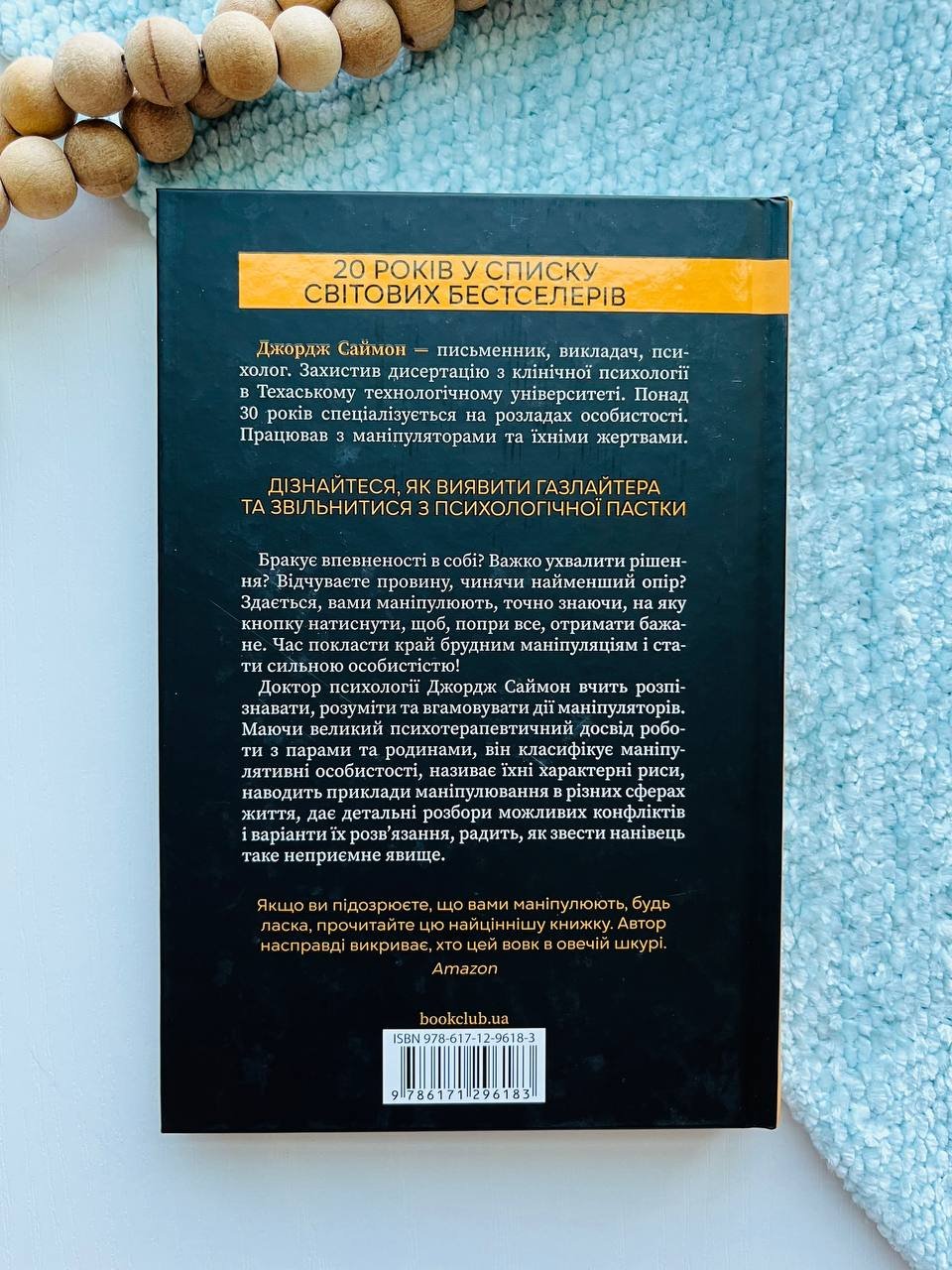 Розпізнавати дії маніпуляторів, розуміти та вгамовувати їх вчить американський доктор психології Джордж Саймон. Він має великий досвід роботи з парами та родинами як психотерапевт, консультує компанії та державні структури. Ця книжка містить безліч прикладів маніпулювання в різних сферах життя, детальний розбір усіх можливих ситуацій і варіацій їхнього вирішення, поради щодо розпізнавання цього неприємного явища і зведення його нанівець.