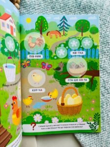 У цьому виданні дитина познайомиться зі свійськими й дикими тваринами та дізнається цікаві факти про них, навчатиметься лічбі й читанню, наведе та розфарбує окремі предмети на малюнках, навчиться правильно визначати колір, форму й розмір, виконає розвивальні завдання, а також потренує увагу та дрібну моторику.