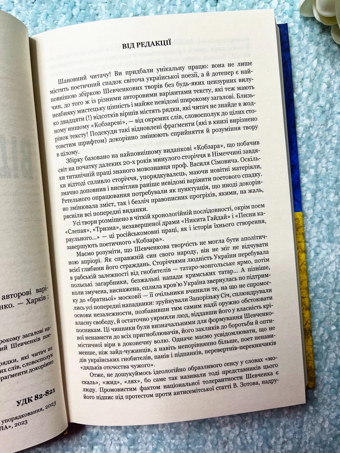 Пропонований виданок має на метi донести широкому загаловi направду якнайповніший, незцензурований і пророчий Шевченків поетичний спадок. Збірку базовано на унікальному, того часу повному виданковi «Кобзара», що побачив світ у 20-х роках минулого сторіччя в Німеччині за редакцiї знаного Василя Сімовича. Цей «Відроджений “Кобзар”» став можливим завдяки майже десятирічній праці упорядкувальника Миколи Зубкова, який залучив значну кількість як оригінальних, так і репринтних творів незаангажованих шевченкознавців (зокрема, дiяспорноï перiодики від 20-х до 90-х рр. минулого сторiччя) та безліч архівних джерел, а також новітні українські й чужоземні літературні та iсторiйнi розвідки. Близько двадцяти вiдсоткiв вiршiв цiєї збірки містять рядки, які читач не знайде в жодному іншому «Кобзареві», – від окремих слів, словосполук до цілих сторінок тексту! Подекуди такі відновлені фрагменти докорінно змінюють сприйняття й розуміння твору в цілому. До того ж чимало творiв подано з різними авторовими варiянтами тексту.