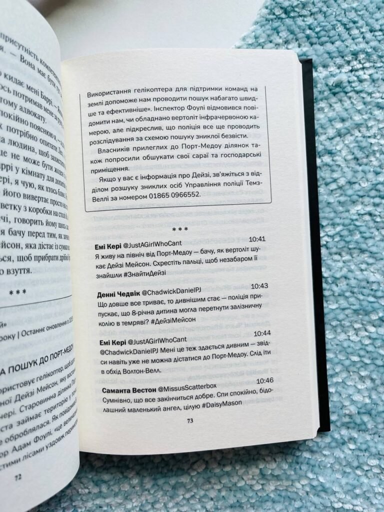 Детектив намагається знайти хоч якийсь слід зниклої дівчинки, але вона ніби розчинилась у повітрі: ніхто нічого не бачив, ніхто навіть не розмовляв з нею на тій вечірці. Поки триває розслідування, сусіди Мейсонів висловлюють у соцмережах найнеймовірніші припущення. А шанси знайти дитину живою тануть з кожною годиною…