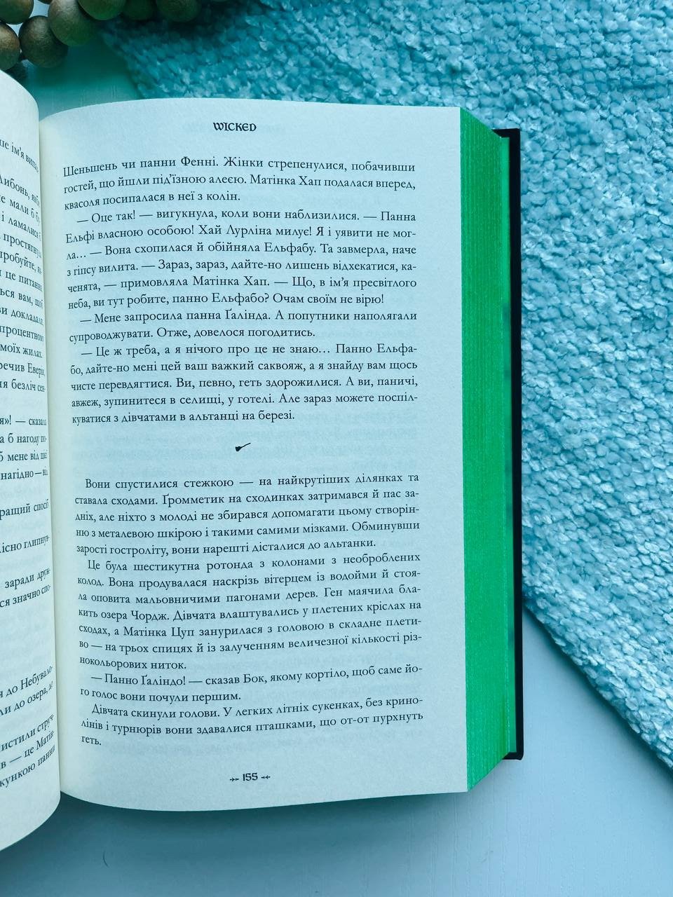 Ґреґорі Маґвайр створює неймовірно яскравий і деталізований фентезійний світ, який перевертає з ніг на голову всі наші уявлення про казку. Тварини тут не лише розмовляють, але прагнуть поваги й рівних прав, Бляшаний Лісоруб стає жертвою домашнього насильства, а маленька зеленошкіра дівчинка Ельфаба виростає лихою відьмою, украй розумною, втім недооціненою. Але вода й тут не доведе її до добра…