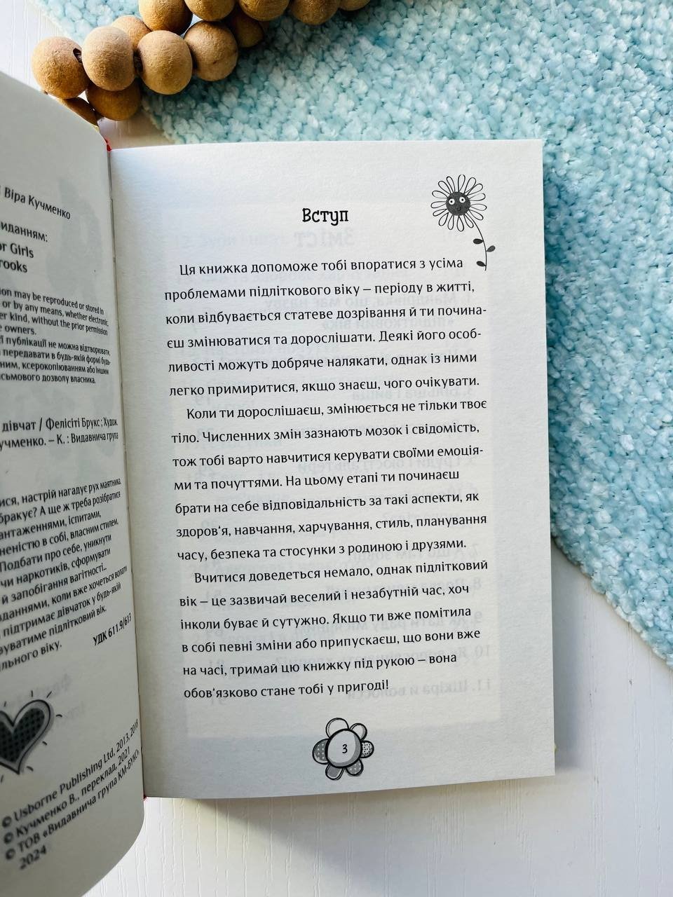 Твоє тіло починає змінюватися, настрій нагадує рух маятника, вирують гормони, а стресів не бракує? А ще ж треба розібратися з харчуванням, фізичними навантаженнями, іспитами, набридливими прищами, впевненістю в собі, власним стилем, дружбою, першим коханням… Подбати про себе, уникнути небезпеки у вигляді алкоголю чи наркотиків, сформувати правильне ставлення до сексу й запобігання вагітності… Як упоратися з усіма цими завданнями, коли вже хочеться волати від безпорадності? Ця книжка підтримає дівчаток у будь-якій ситуації, якими повсякчас дивуватиме підлітковий вік.
