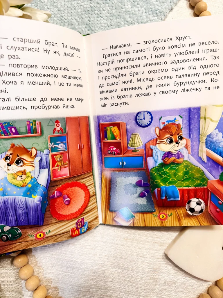 Ця книжка не звичайна, вона повчальна. Ти знайдеш у ній історії про звірят, які іноді не слухалися маму та сварилися з рідними. Утім наші герої вчасно зрозуміли, що сім’я — це найголовніше в житті, а рідні завжди підтримають і допоможуть. Хочеш дізнатися, як їм це вдалося? Розгортай книжку й читай казки про звірят, які зрозуміли, що їхні батьки та рідні найкращі і як сильно вони їх люблять.