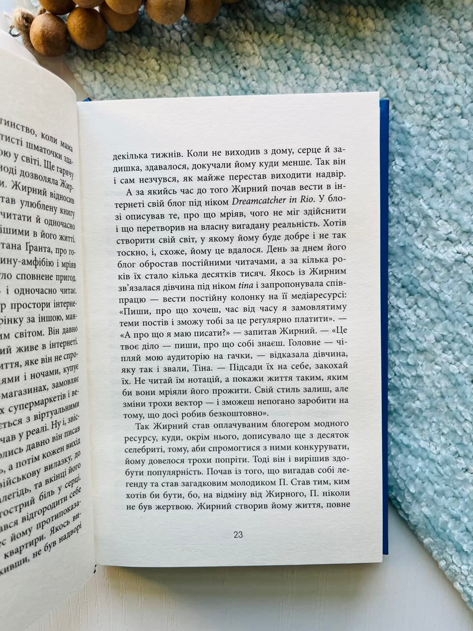 Він — один із найпопулярніших блогерів, що вигадав собі ідеальне життя, і так герой його дописів став тим, ким він сам хотів бути: відчайдушним і талановитим шукачем пригод, чиї дні сповнені запаморочливих злетів та падінь, романів на одну ніч і захопливих вражень. У нього закохуються, з ним прагнуть спілкуватися, на його публікації щодня чекають, навіть не підозрюючи, що по той бік екрана — незграбний і невпевнений у собі мрійник, який зачинився у чотирьох стінах і роками боїться зустрітися з реальністю. Якось із вікна своєї квартири він побачив дівчину з пшеничним волоссям, що мешкає у його дворі,— і відтоді для нього почалася нова історія. Та її фінал залежатиме від того, чи відважиться він урешті — хоч на короткий час — прожити власне, а не чуже життя.