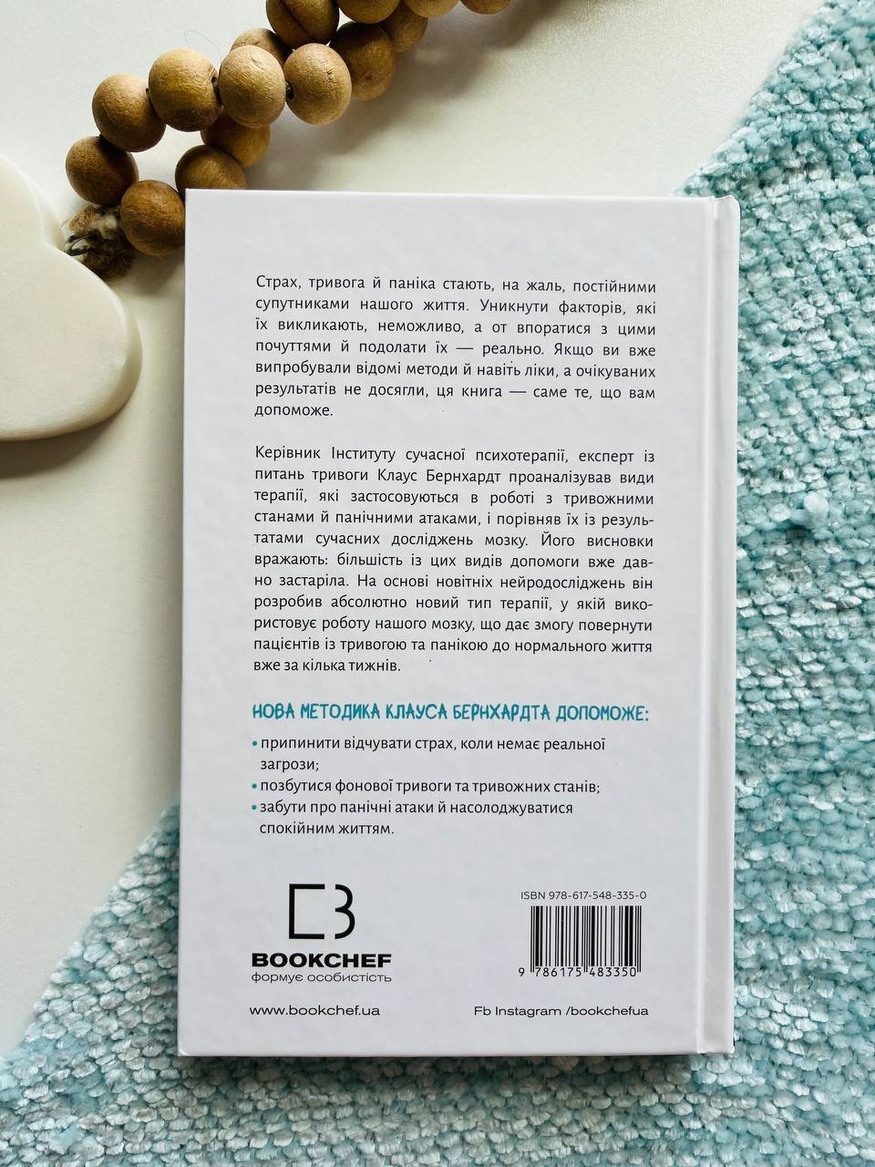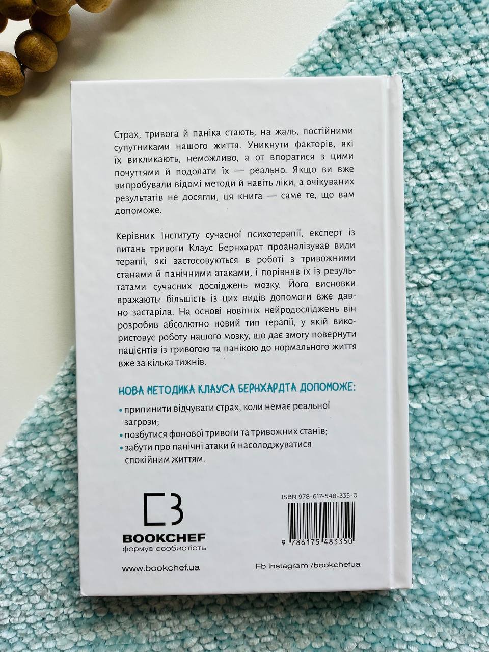 Експерт із питань тривоги Клаус Бернхардт проаналізував види терапії, які зазвичай застосовуються в роботі з тривожними станами й панічними атаками, і порівняв їх із результатами сучасних досліджень мозку. Його висновки вражають: більшість із цих видів терапії вже давно застаріла й на сьогодні не має обґрунтування з нейронаукового погляду. На підставі сучасних досліджень він розробив абсолютно новий тип терапії з урахуванням особливостей роботи нашого мозку, що допомагає пацієнтам із тривогою та панікою. Вправи й техніки, із якими Клаус Бернхардт знайомить читачів цієї книги, дають змогу багатьом людям повернутися до життя без страху вже за кілька тижнів.