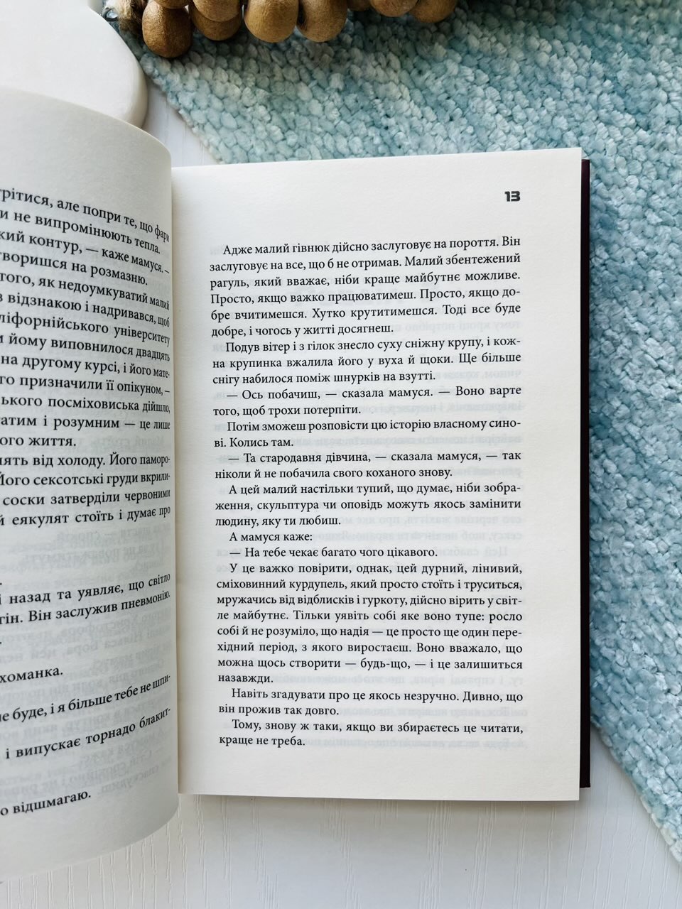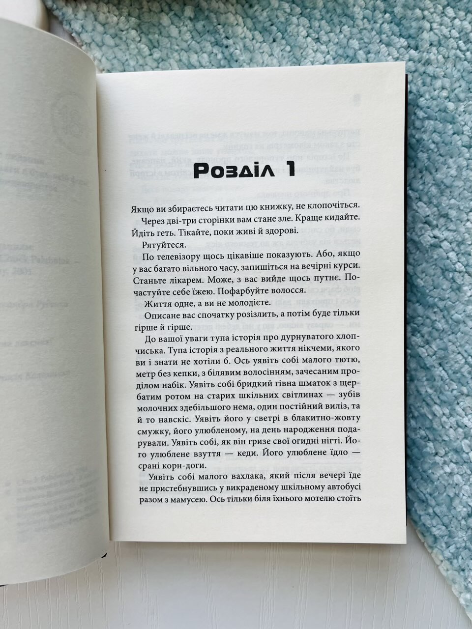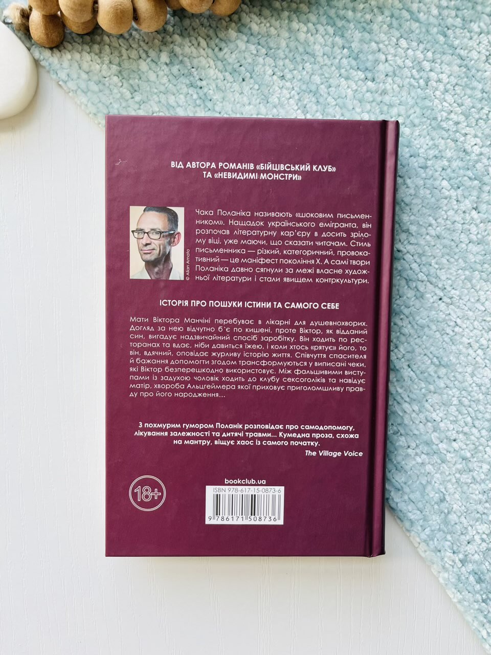 З похмурим гумором Поланік розповідає про самодопомогу, лікування залежності та дитячі травми… Кумедна проза, схожа на мантру, віщує хаос із самого початку