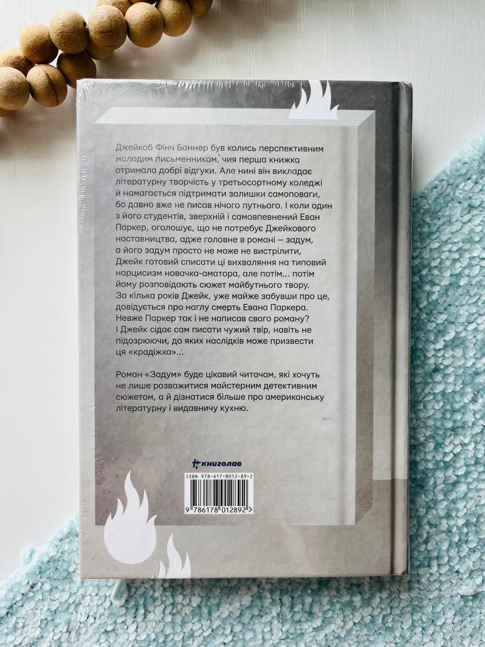 Книга «Задум» — це психологічний трилер про письменництво американської авторки Джин Ганфф Кореліц. Колись молодий перспективний письменник Джейкоб Фінч Боннер подавав надії, а тепер викладає літературну творчість у забутому світом коледжі. Один з його студентів, самовпевнений Еван Паркер заявляє про феноменальність свого задуму й від допомоги вчителя-невдахи відмовляється. Сюжет майбутнього твору переконує Джейкоба в тому, що його учень не хвалько-нарцис-аматор, а дійсно здібний хлопець.Минув час. Джейкоб дізнається про смерть колишнього учня. Викладач вже давно не писав і не публікував нічого вартісного, тому написати чужий роман, власник якого нічого зробити з цим не зможе, звучить як хороша ідея. Слава приходить до чоловіка, однак не сама, а з погрозами.Перша частина «The Book Series»: історії про творчість, літературу й славуДжейк Боннер викладає в третьосортному коледжі після того, як з гарного початку письменницького шляху скотився до невдалих сюжетів і покинув це діло взагалі. Він апатично викладає тритижневий семінар літературної творчості, коли студент Еван Паркер описує сюжет роману, який він збирається написати. І Джейк, і його зарозумілий учень вважають, що цій історії судилося стати бестселером і навіть бути екранізованим.Програму коледжу зрештою закривають. Джейк кілька років працює на іншій роботі, яка йому не подобається. Хоча про письменницькі курси він теж приємних спогадів не має, але він ніколи не забуває сюжет Еван Паркера. Залізши в Гугл, викладач виявляє, що учень помер досить скоро після завершення тритижневого семінару.Чи буде крадіжкою позичити ідею свого мертвого студента? Буде чи не буде — це питання а-ля Гамлета. Джейкоб натомість хапає шанс і користується ним сповна. Та картковий будинок починає одного дня руйнуватися. Хто звинувачує його і чого хоче незнайомець?У романі «Задум» Джин Ганфф Кореліц поєднує кілька жанрів — трилер і сатиру — створюючи водночас цілих дві захопливих історії, адже ми занурюємось і у сюжет «Задуму», і у події краденої (чи ні?) історії. Драма книжки захоплює і змушує задуматися над етичними питаннями письменства. Ідея, вочевидь, належала Евану. Та він не розпочав писати навіть чернетки. Життя у задум вдихнув саме Джейкоб. Чий же це роман?Головний герой, якого ви будете ненавидіти й обожнюватиУ «The Plot» Джин Ганфф Кореліц дає нам можливість глибоко зануритися у видавничий світ, його злети й падіння, нескінченні престури й переконує у тому, що написання книги й її продаж — це дві абсолютно різні речі. Занурюючи у цей світ книжкового маркетингу й буднів письменника, авторка пропонує подорож динамічним і непередбачуваним сюжетом, що пропонує значно більшу етичну дилему, ніж та, яка лежить на поверхні. Головна проблема захована глибше й її ми, звісно, озвучувати не будемо: залишаємо вам насолоду купити книгу й довідатись про все самим.Понад 100 тисяч оцінок і 16 тисяч відгуків на Goodreads!Номінація у премії Goodreads Choice Award за найкращий трилер у 2021 році.Перекладена понад 10 мовами світу.«Одна річ, яка, безсумнівно, була б злочином — це оприлюднення будь-яких сюжетних поворотів “Задуму”. Сюжет книжки настільки геніальний, що його слід призначити як обов’язкову літературу в самих програмах для письменників, які він підтримує, як взірець чудової побудови оповіді, і як попередження про по