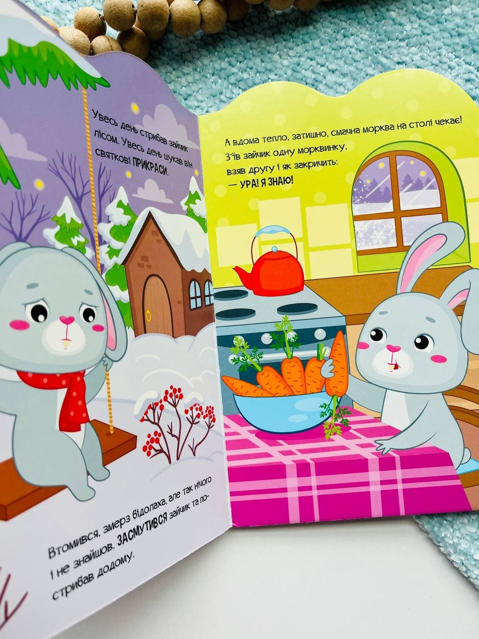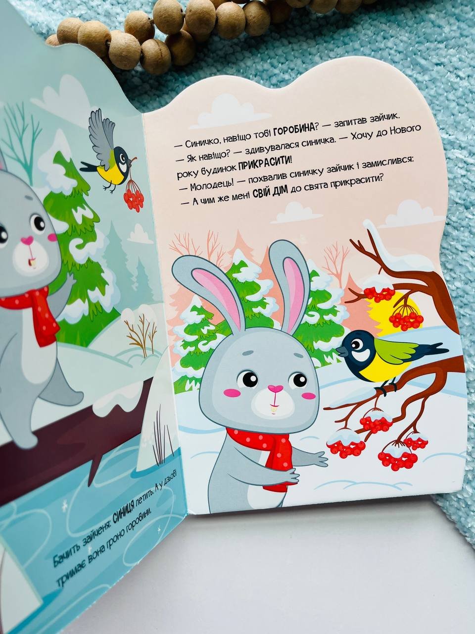Разом із ним маленькі читачі стрибають з гілки на гілку, шукають звірят і пташенят, розгортають яскраві віконця із сюрпризами, щоб нарешті набути, де сховалося білченя і його друзі, та як готуються до Різдва в цьому чарівному лісі.