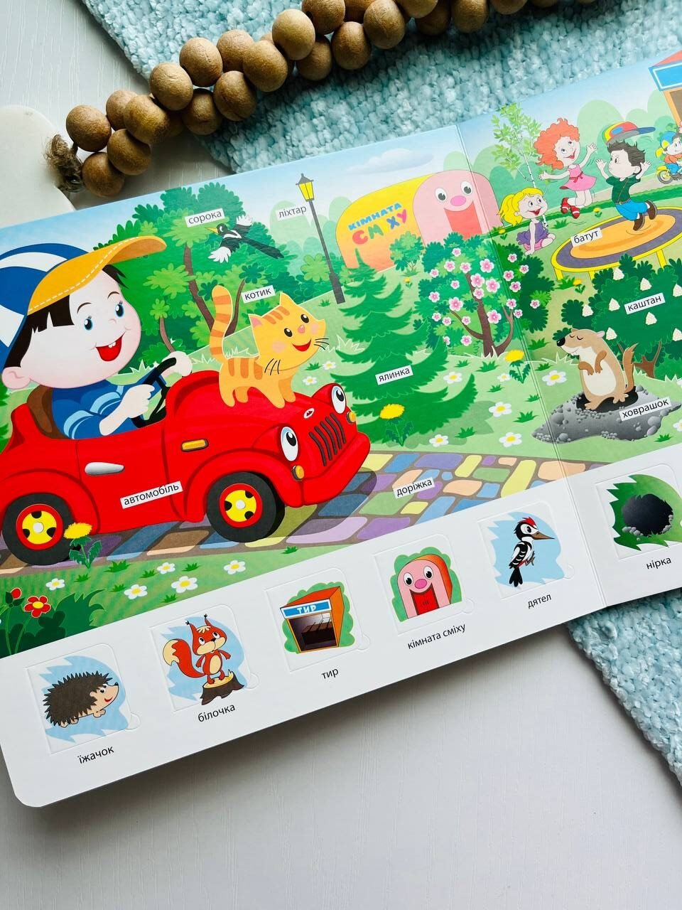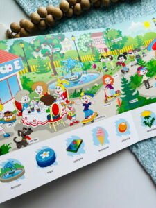 Аж 50 прихованих віконець із несподіванками, яскраві малюнки, підписи українською мовою до всіх об’єктів – все це є у цій картонній книзі.
